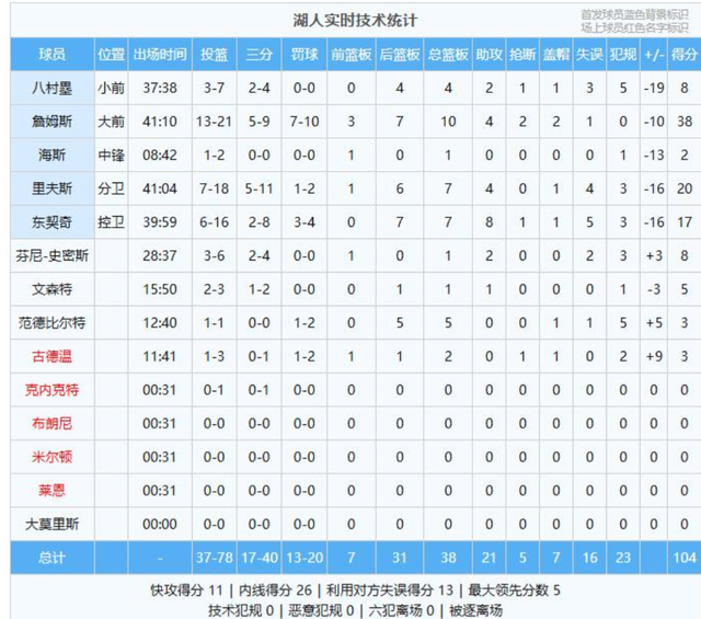 詹皇全场单砍三十八加十的数据,已经非常尽力了,奈何自己的队友太菜。