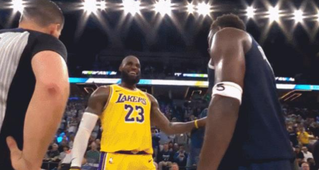 其一,在本场对决还剩下两分钟的时候,湖人落后了七分,詹皇既然和森林狼的爱德华兹开心的进行了交流。
