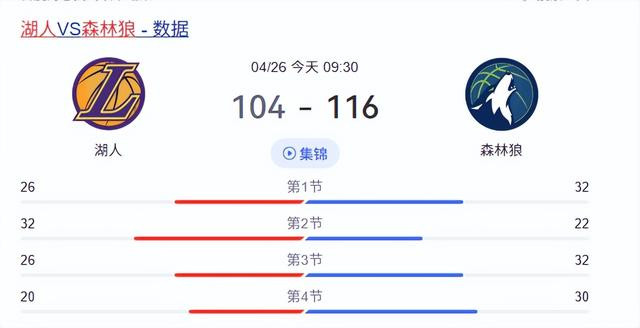 这两支队伍在本场G3的对决中,首节洛杉矶湖人二十六比三十二落后明尼苏达森林狼。