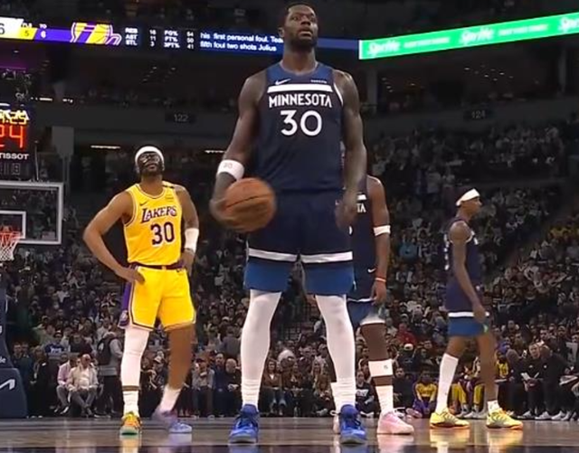 洛杉矶湖人的奥斯汀·里夫斯、朱利叶斯·兰德尔的3分没能投进,而迈克·康利的三分命中,至此,明尼苏达森林狼领先五分。